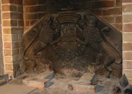 Les Saulx-Tavannes blasonnaient en effet " à un lion couronné" (comme à gauche sur la plaque) et les Bourbon-Busset " semé de lys brisé d'un lambel ou cotice" (comme à droite sur la plaque). Cette plaque aurait donc pu être coulée peu à après ce mariage et être écartelée, comme d'usage, des armoiries des familles des deux époux.